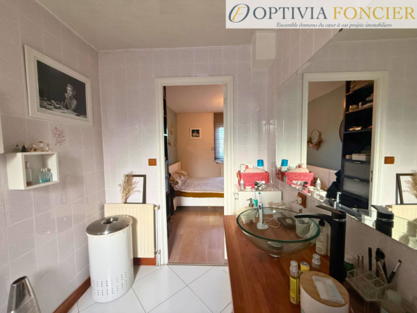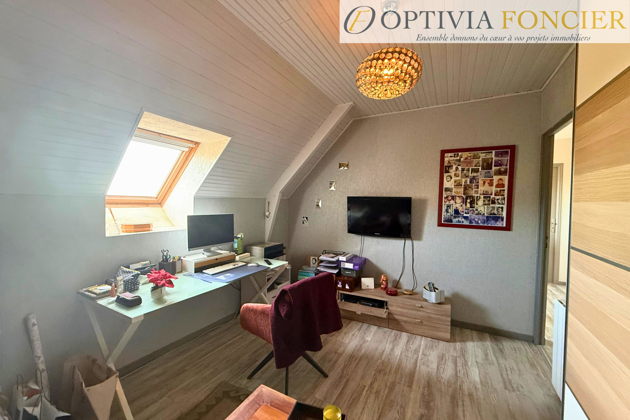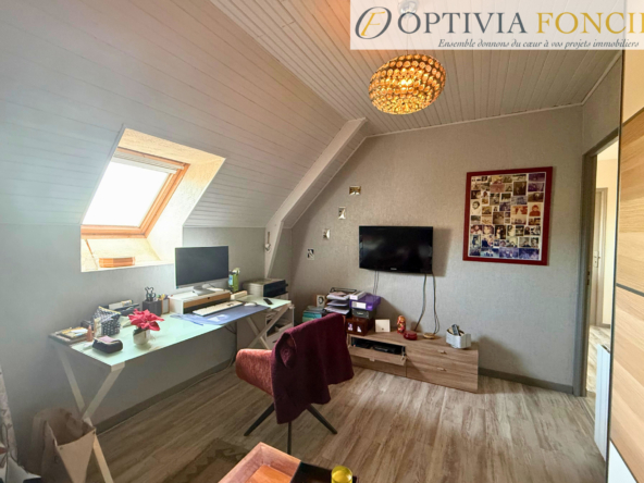 – À l’étage : Vous trouverez trois chambres, un bureau ainsi qu’une salle d’eau avec WC.