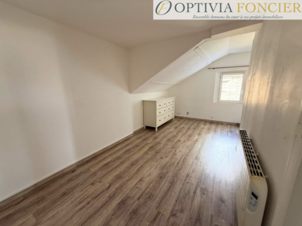 Au deuxième étage, une chambre lumineuse vient compléter l’ensemble, offrant un espace nuit cosy et intimiste.