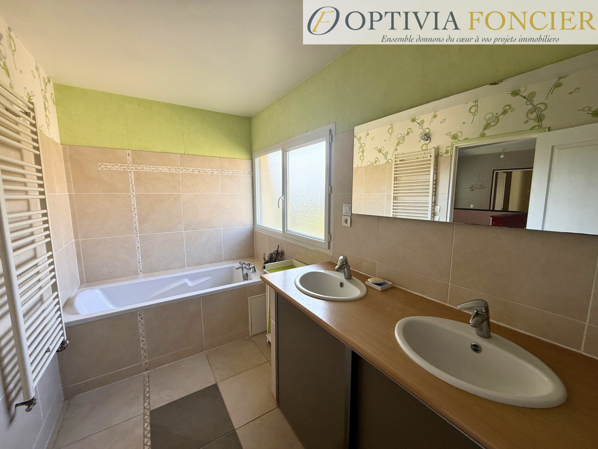 – À l’étage : un palier menant à quatre chambres, une salle de bains avec douche et double vasque ainsi qu’un WC indépendant.
